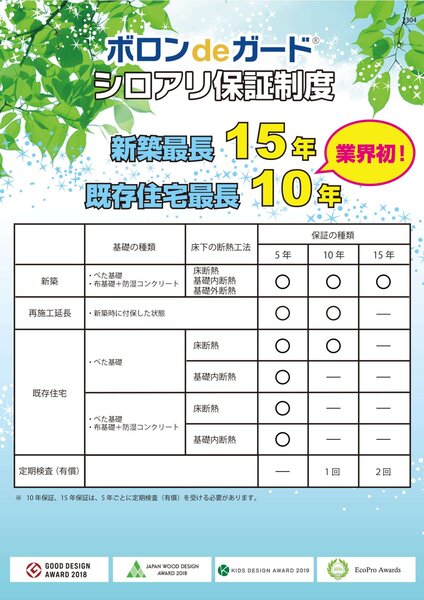 総合保証(地盤保証・完成保証・シロアリ保証・建物初期保証・住宅設備保証)