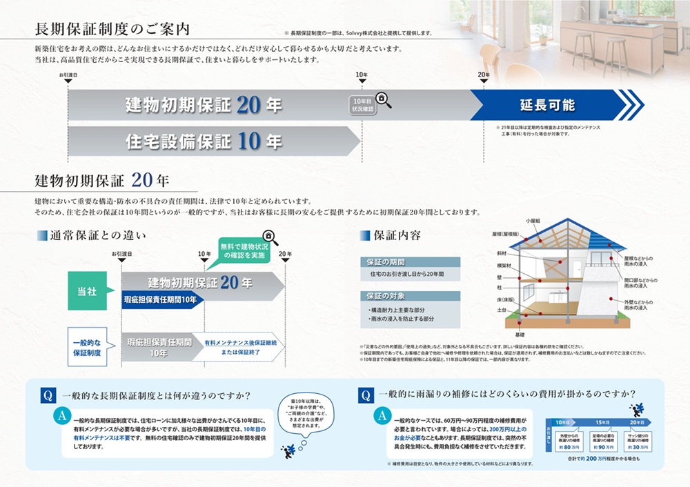この保証によって、建物お引き渡し後20年間、安心してお住まいいただくことができます。(万が一、当社がなくなってしまっても、保証されるものです)