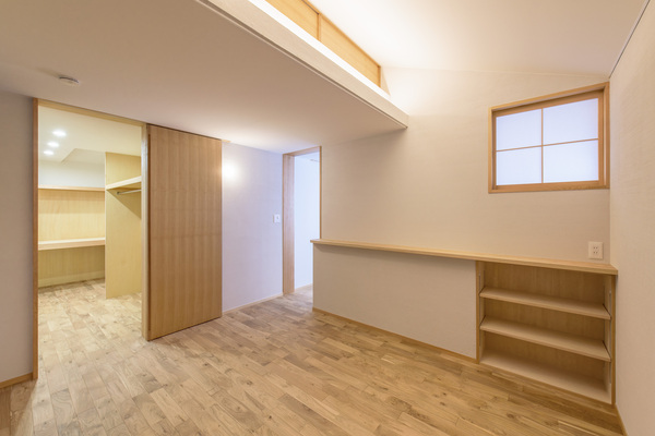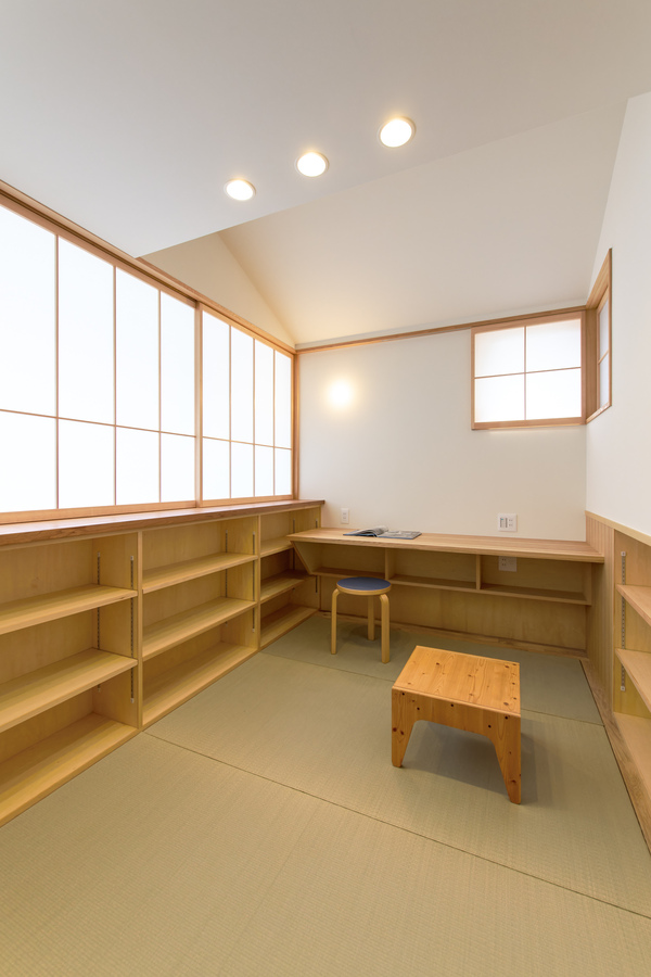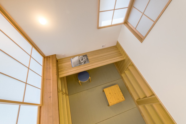 書斎スペース(縁なし目積織りの畳)/左手障子は吹抜けにつながる